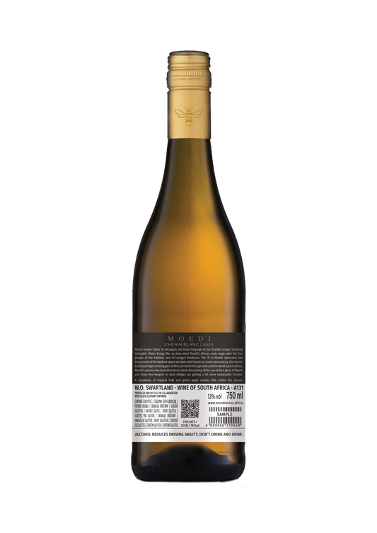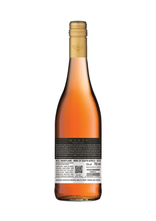 Moedi means 'water' in Setswana, the home language of our founder Lesego Serolong Holzapfel. Water brings life; so does wine! Moedi's African roots begin with the San people of the Kalahari, one of Lesego's forebears.