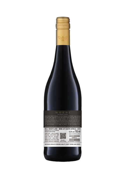 The 'O' in Moedi represents the honeycomb of the beehive where we labor with friends to create wine and joy. We cherish bullding bridges to bring part of Africa to world through wine and the world back to Africa Moedi's success ties back directly to human flourishing.